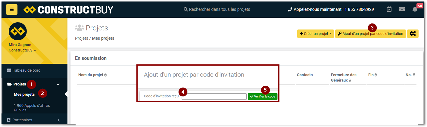 Lorsque vous recevez une invitation à soumissionner de ConstructBuy avec un code d’invitation, voici comment accéder au projet.