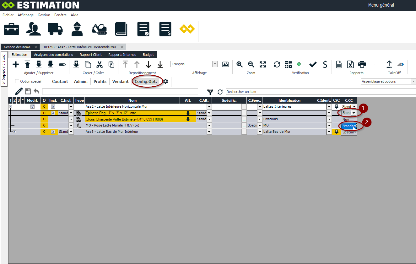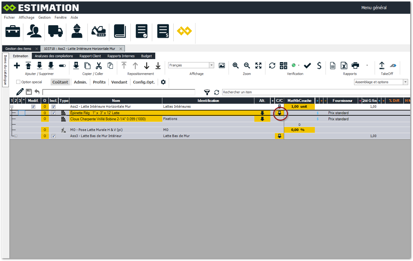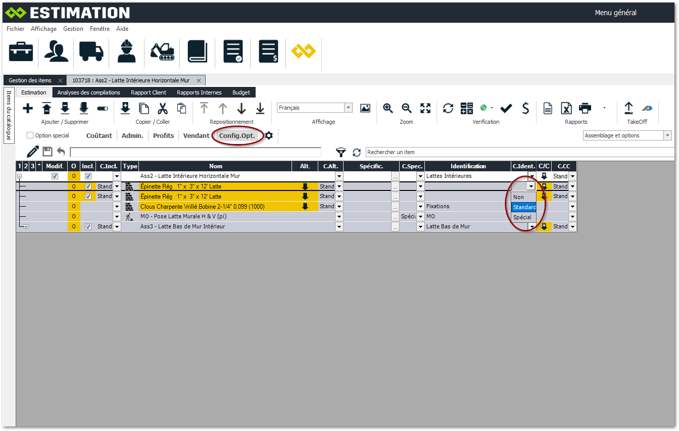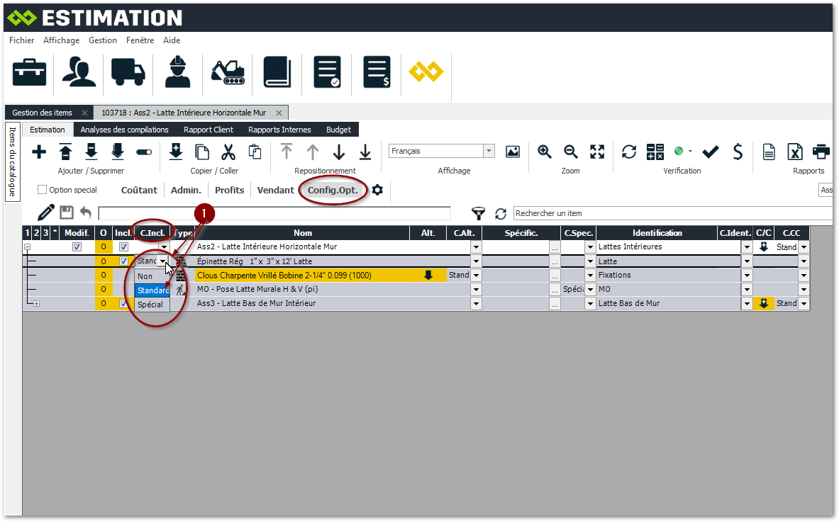 Permet d’inclure ou exclure un item selon les besoins de la soumission.