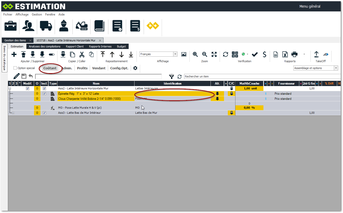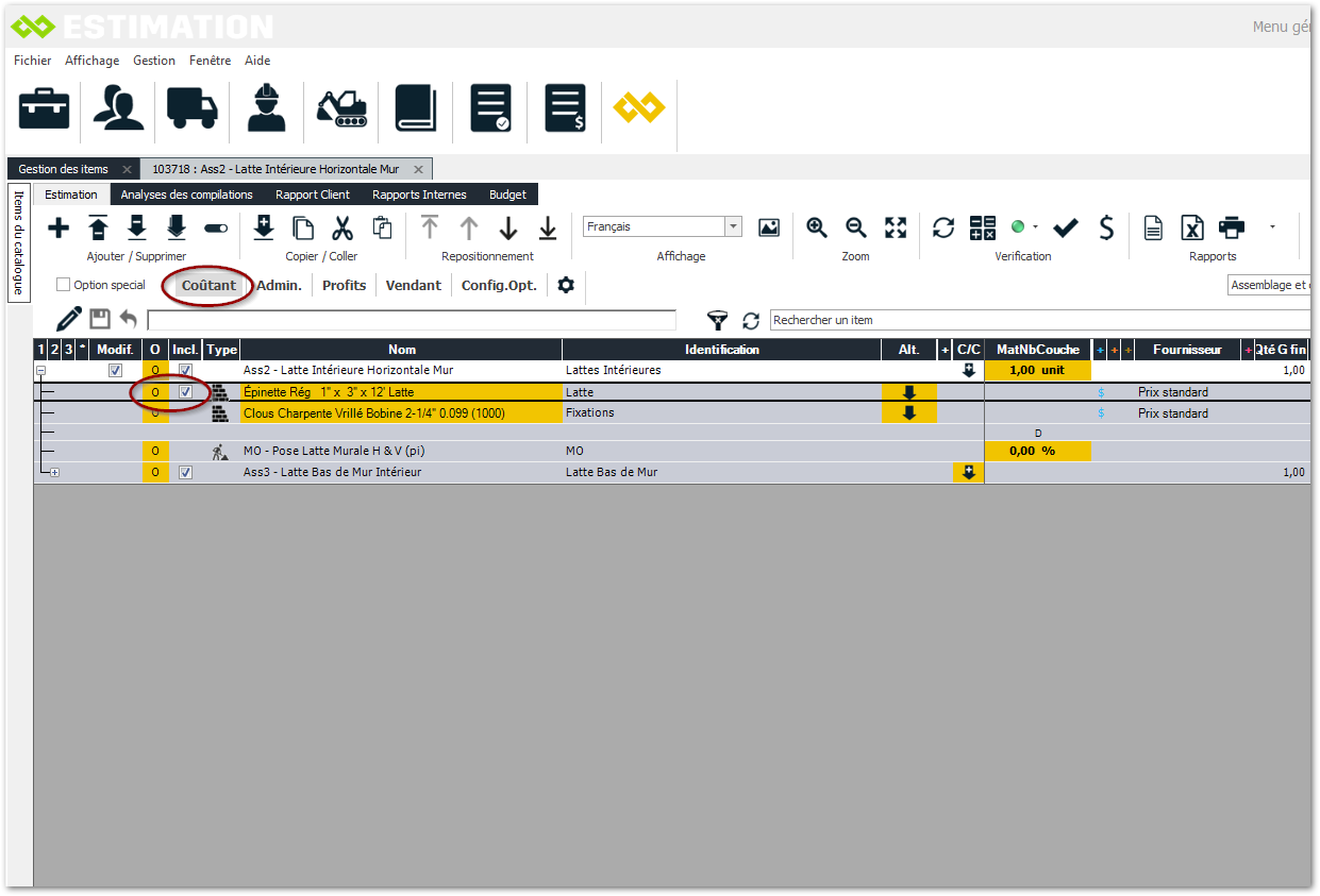 Retournez à l’onglet Coûtant: Une case à cocher va être maintenant visible pour inclure ou exclure cet item