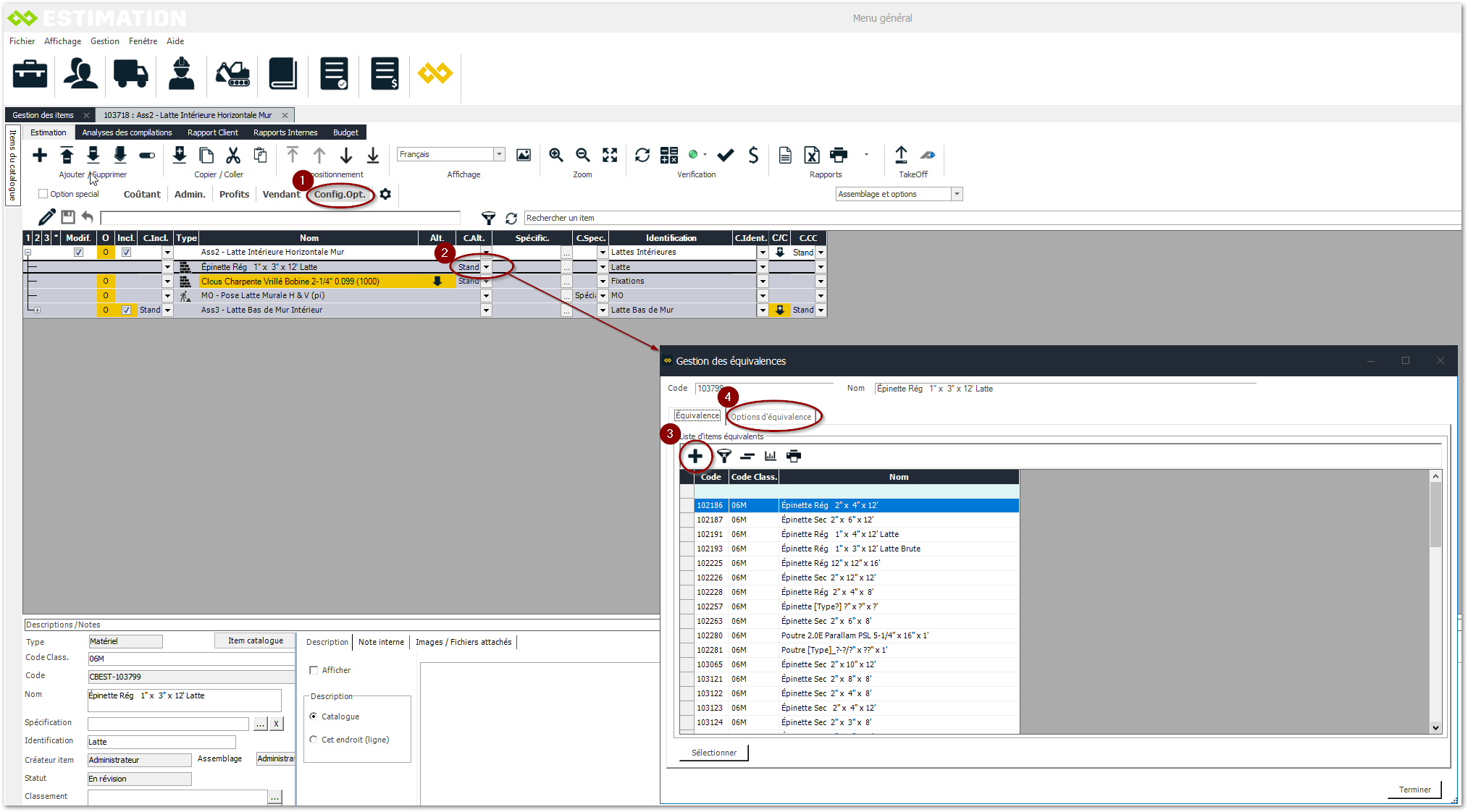 Vous pouvez aussi sélectionner l’onglet : Options d’équivalence.