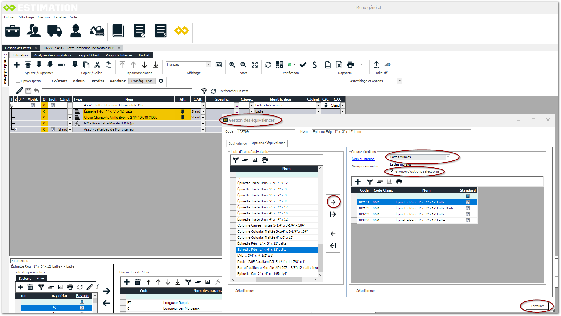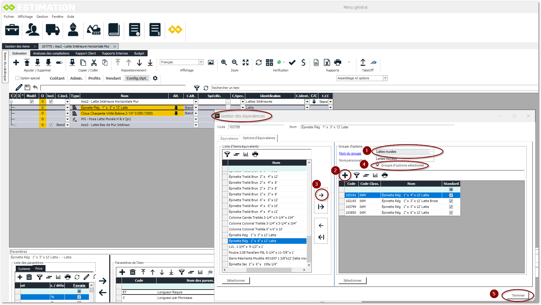 Dans la gestion des équivalences, sélectionnez: Lattes murales à l’aide du menu déroulant