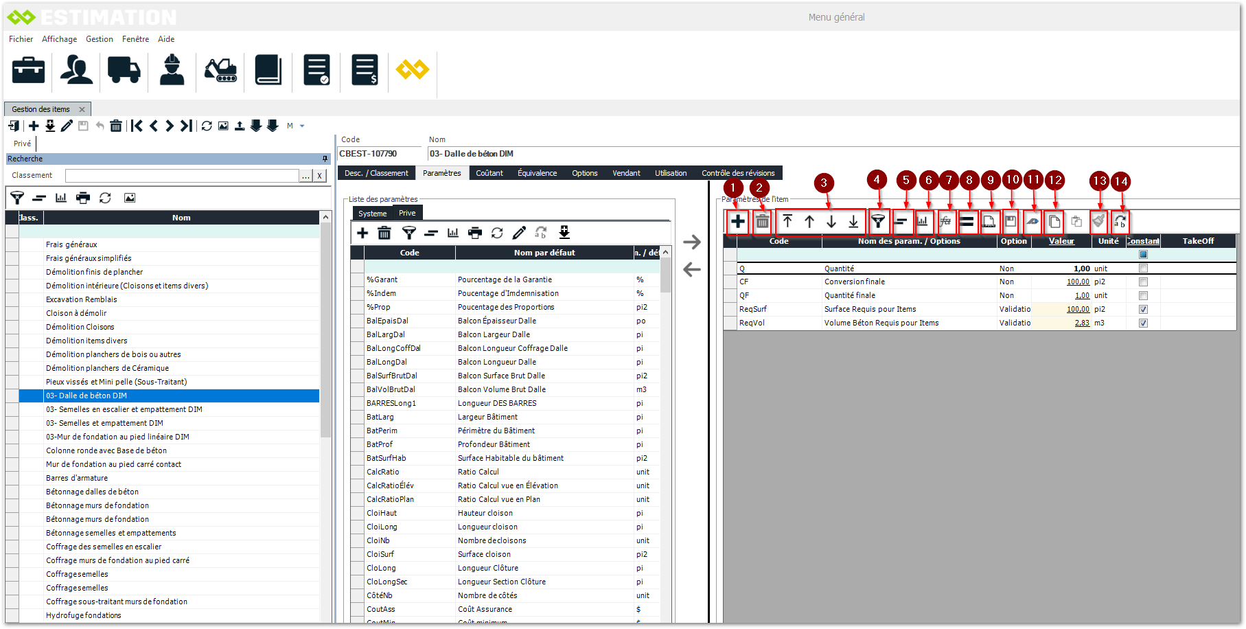 Enregistrez les paramètres de l’item au catalogue (Très important après tous changements)