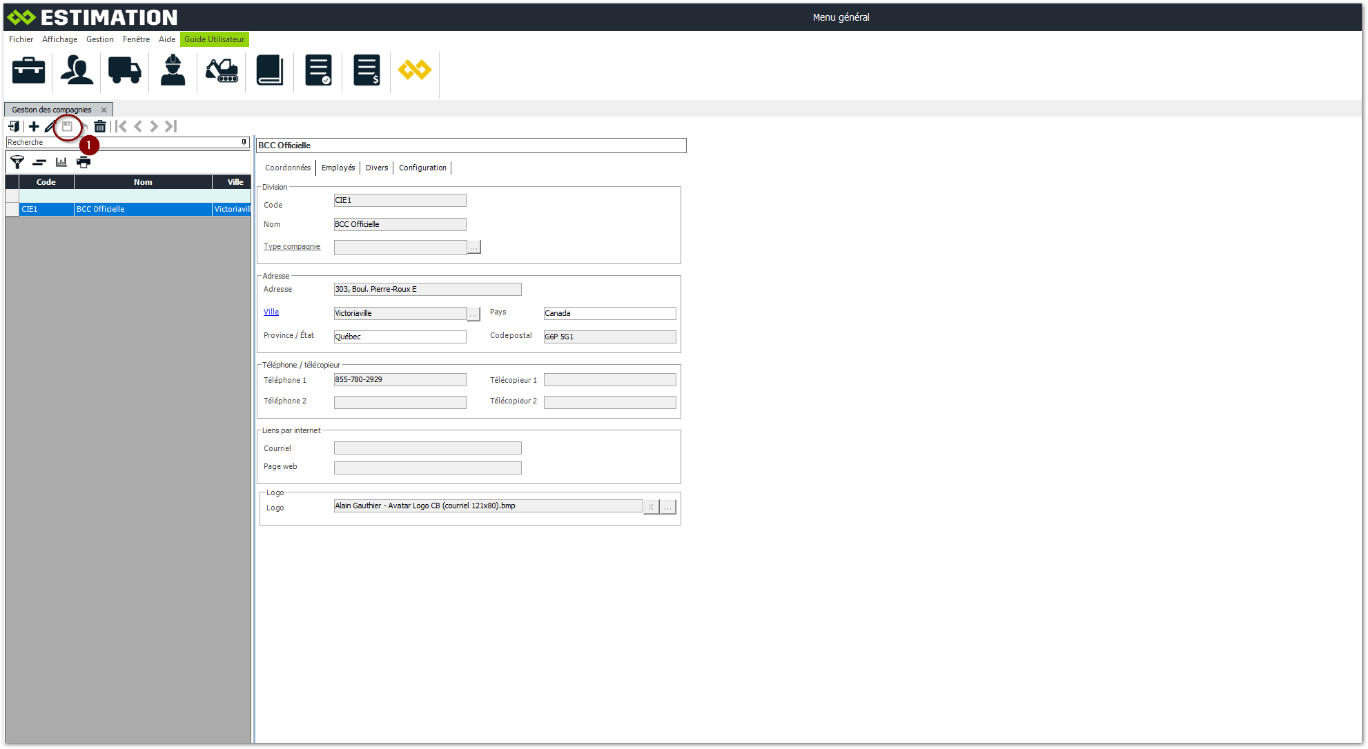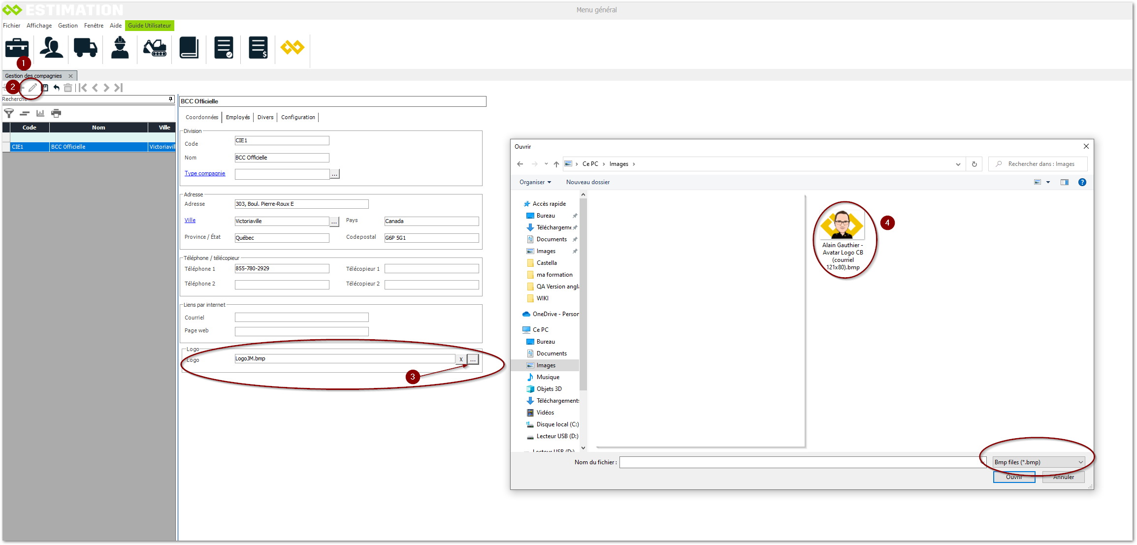 Pour insérer ou modifier le logo de compagnie dans ESTIMATION en SAAS.
