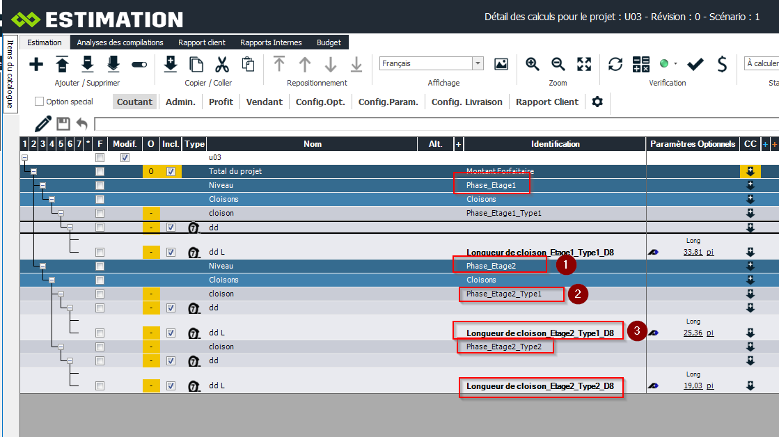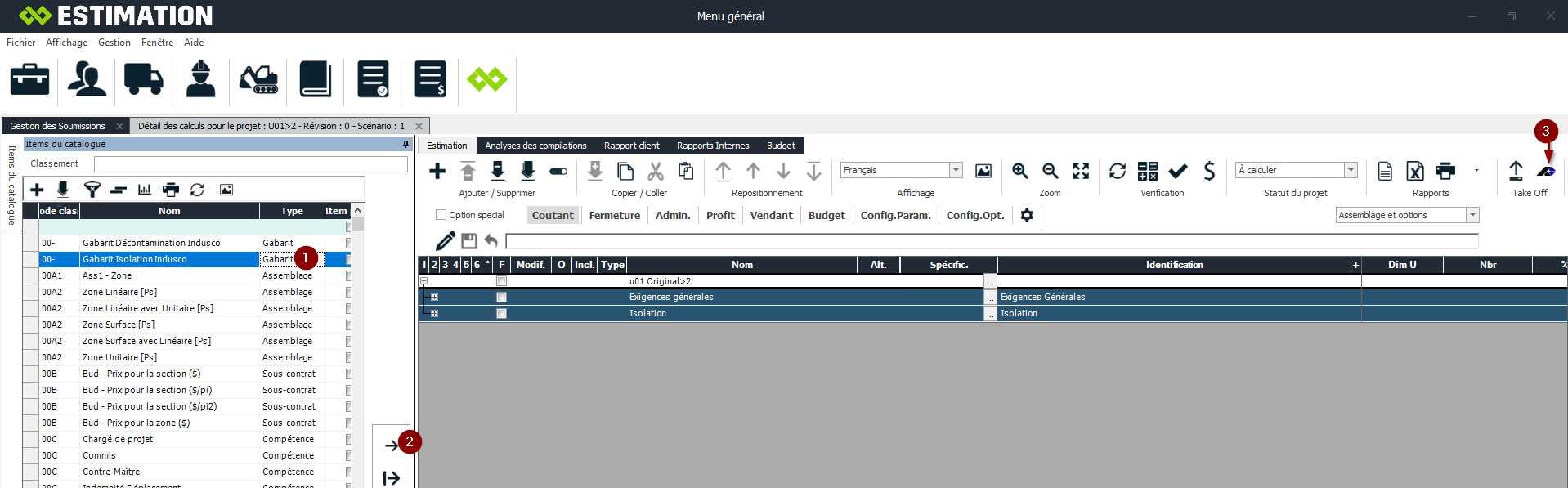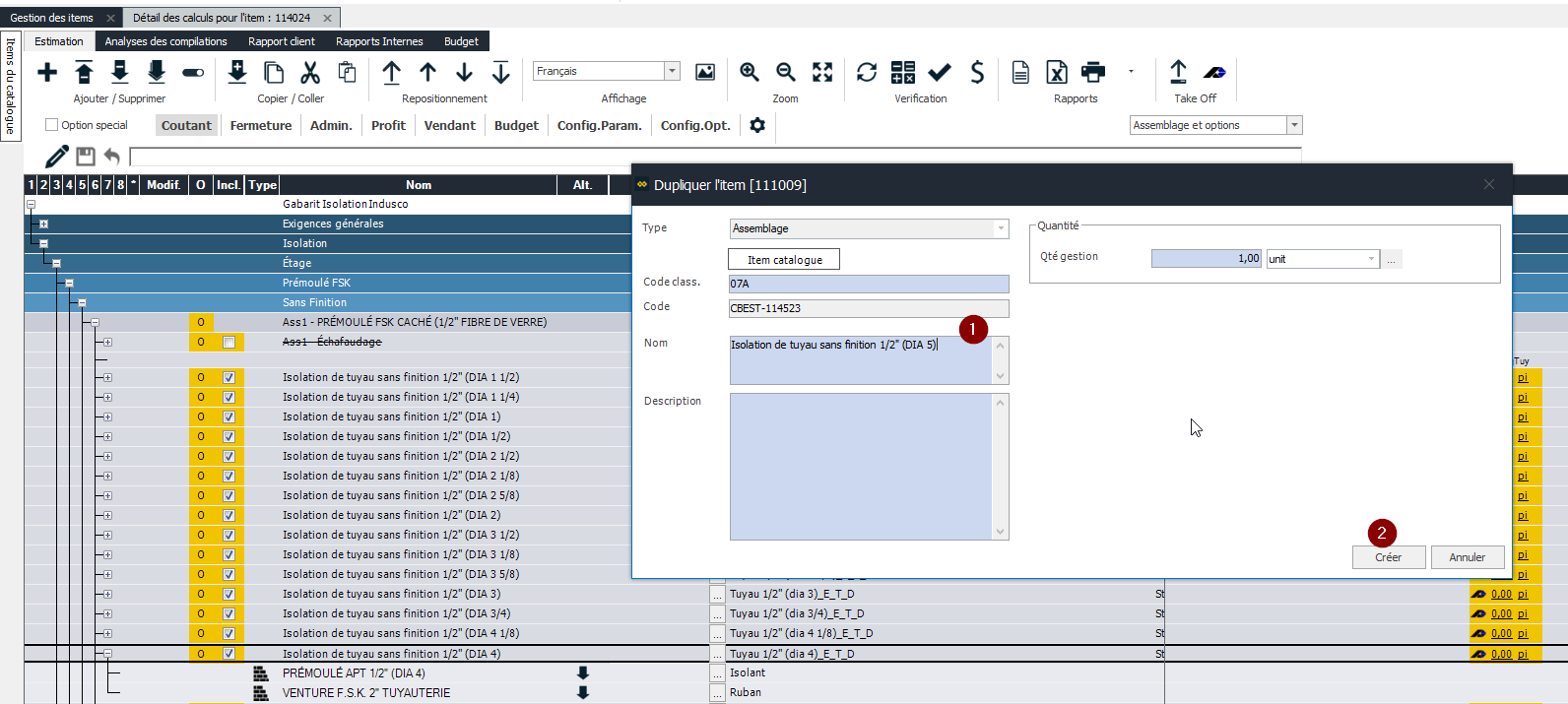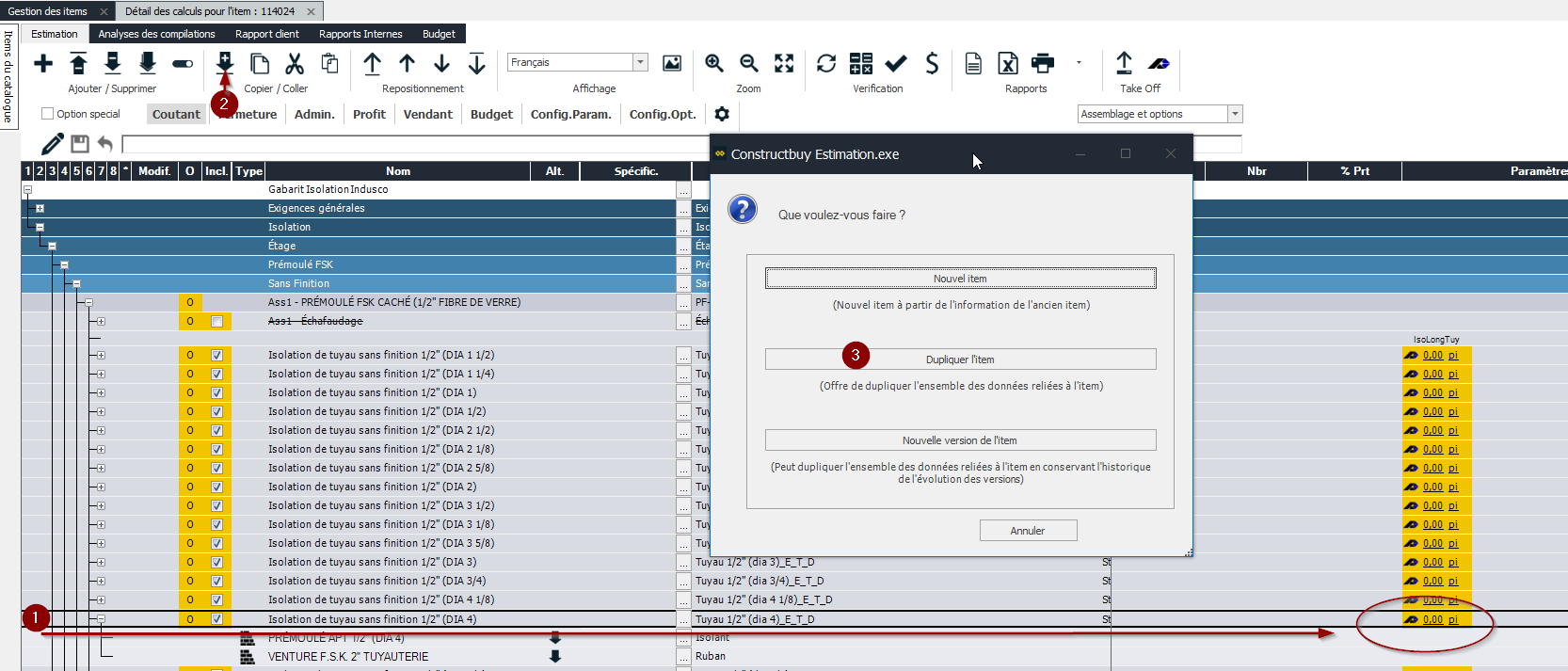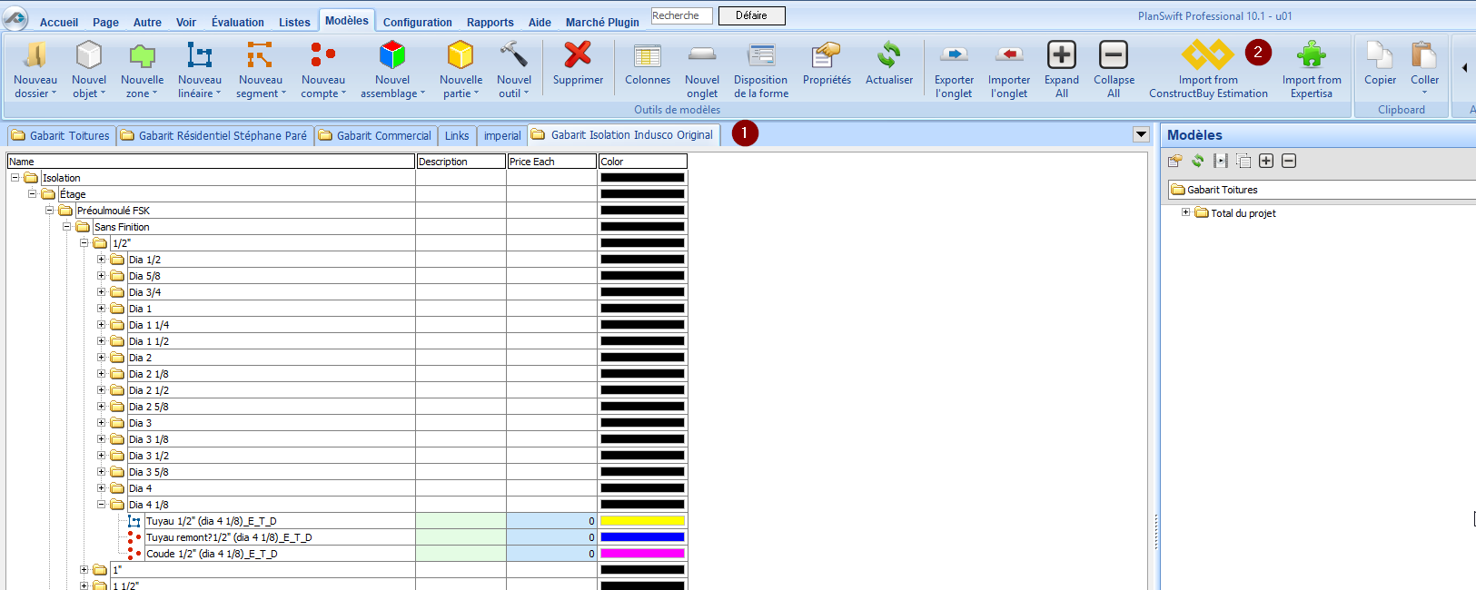 Copier votre projet dans ESTIMATION ou Ajouter à nouveau votre gabarit