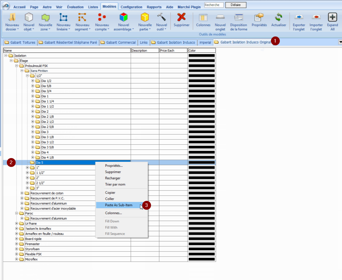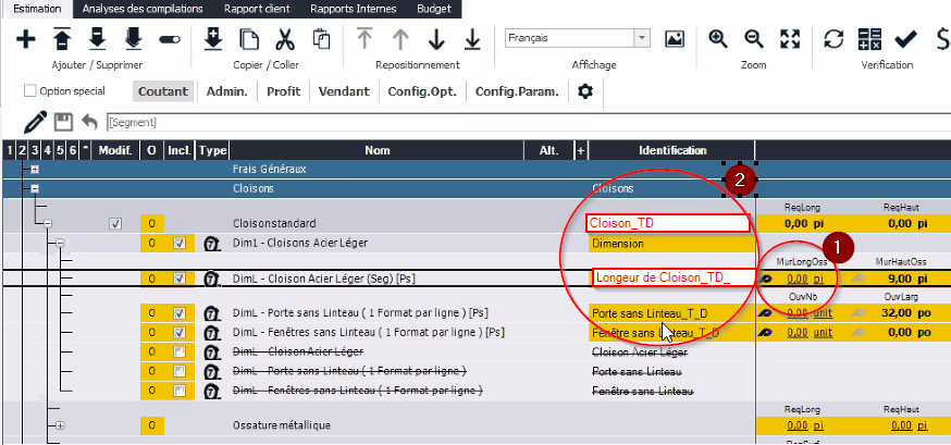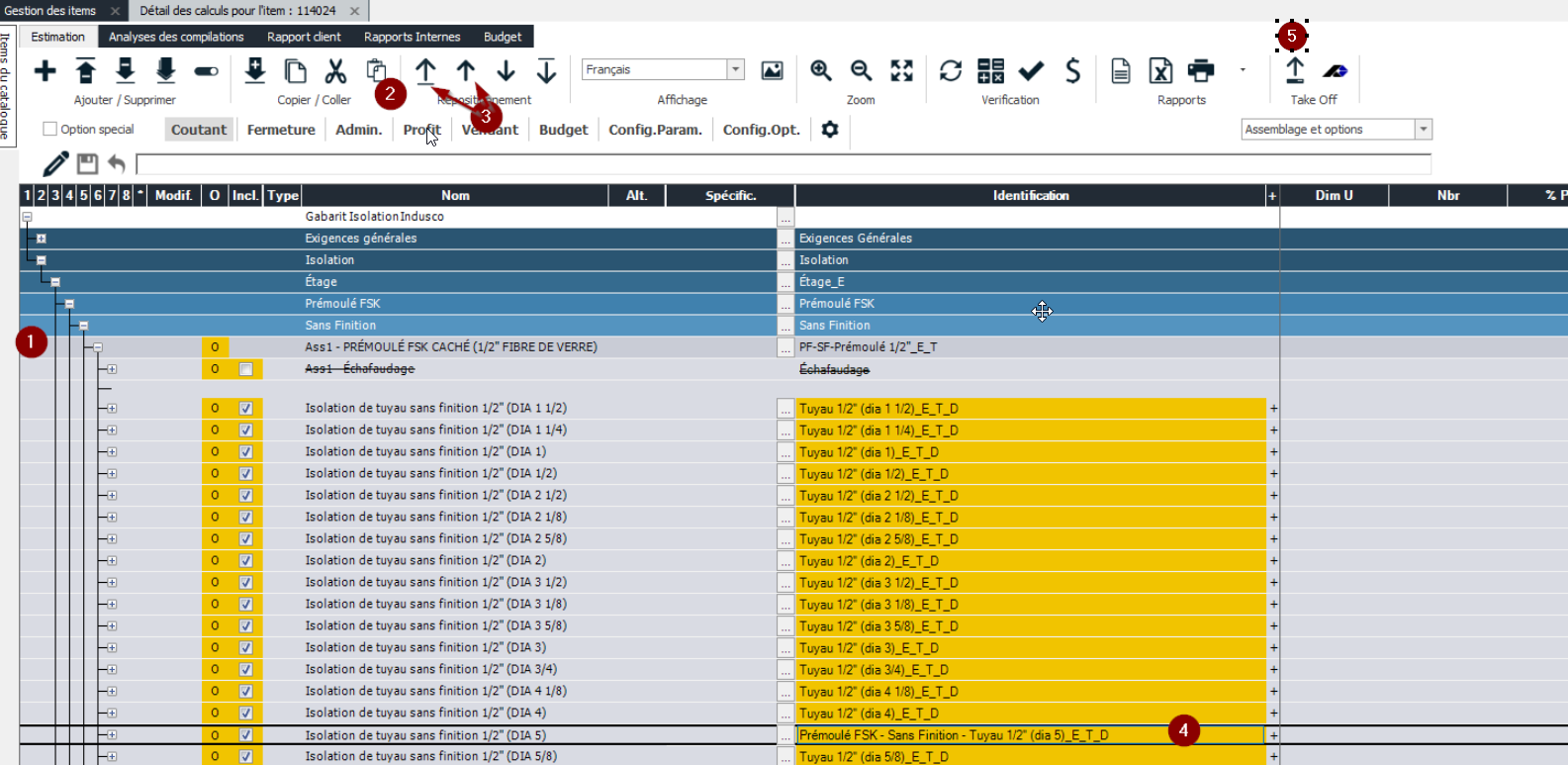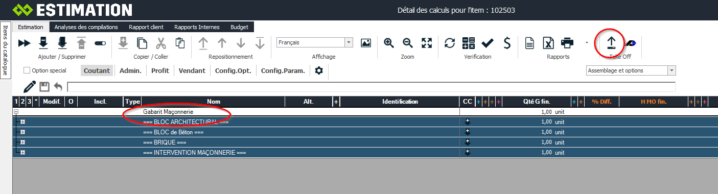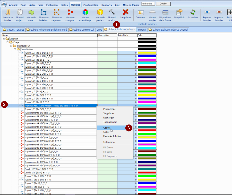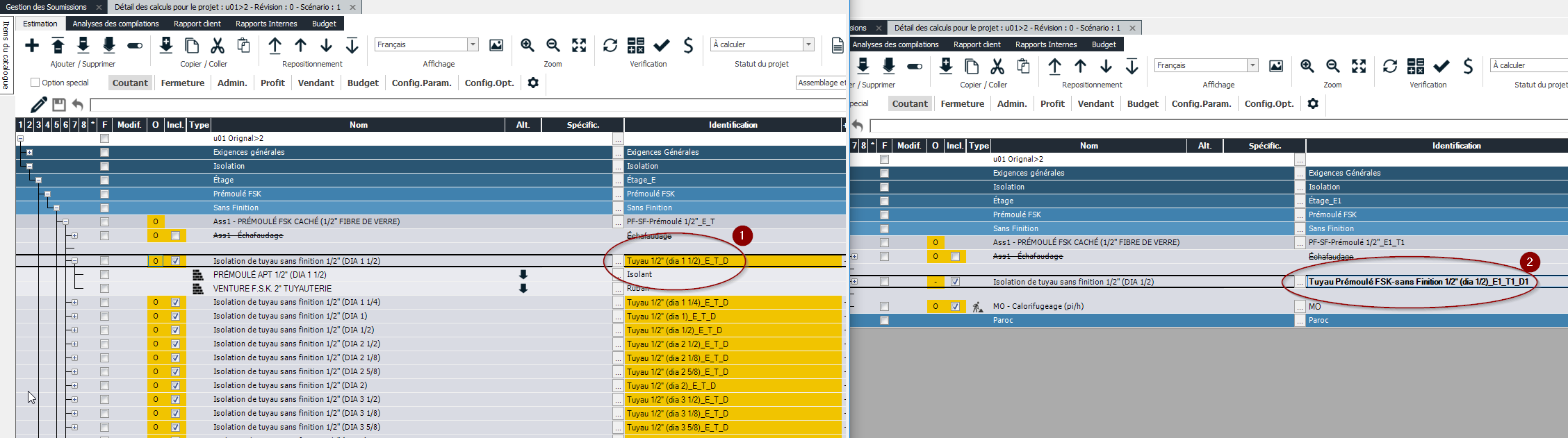 Copier votre projet dans ESTIMATION ou Ajouter à nouveau votre gabarit