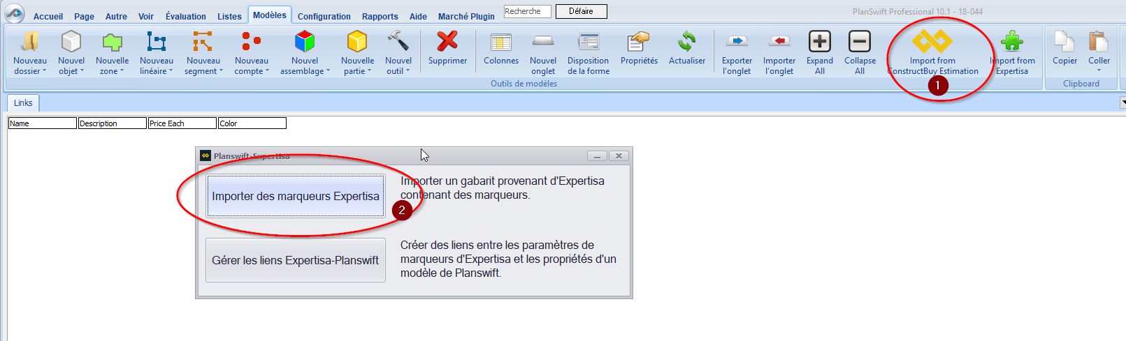 Notez que si le numéro de projet dans ESTIMATION est le même que dans Planswift, l'importation se fera sans devoir choisir le fichier)