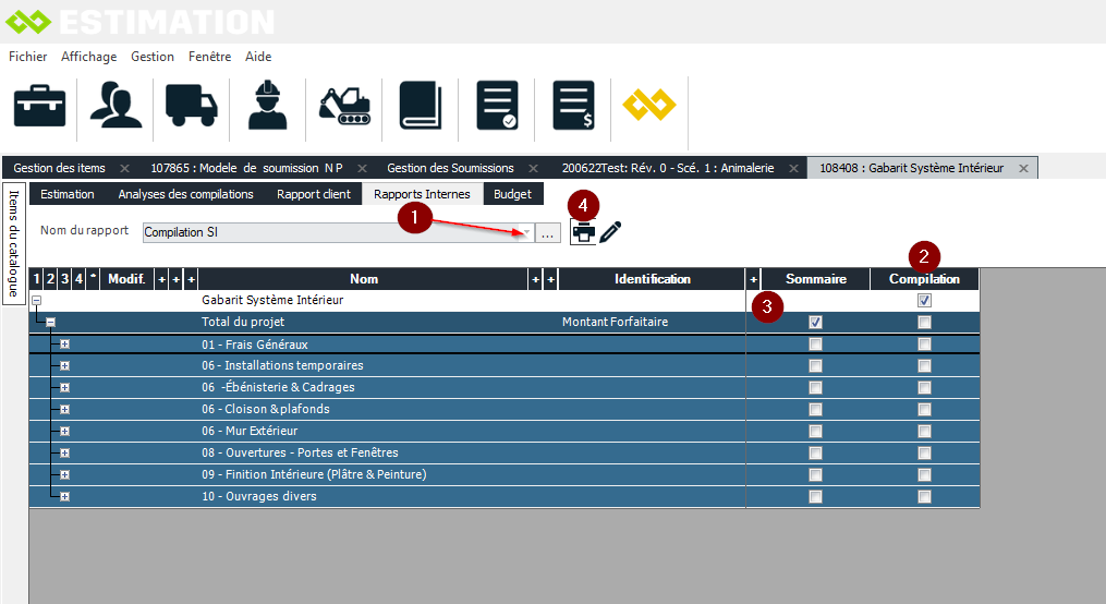 Il est important de configurer vos rapports dans vos gabarits afin qu’ils soient automatiquement inclus dans les soumissions effectuées avec le gabarit.