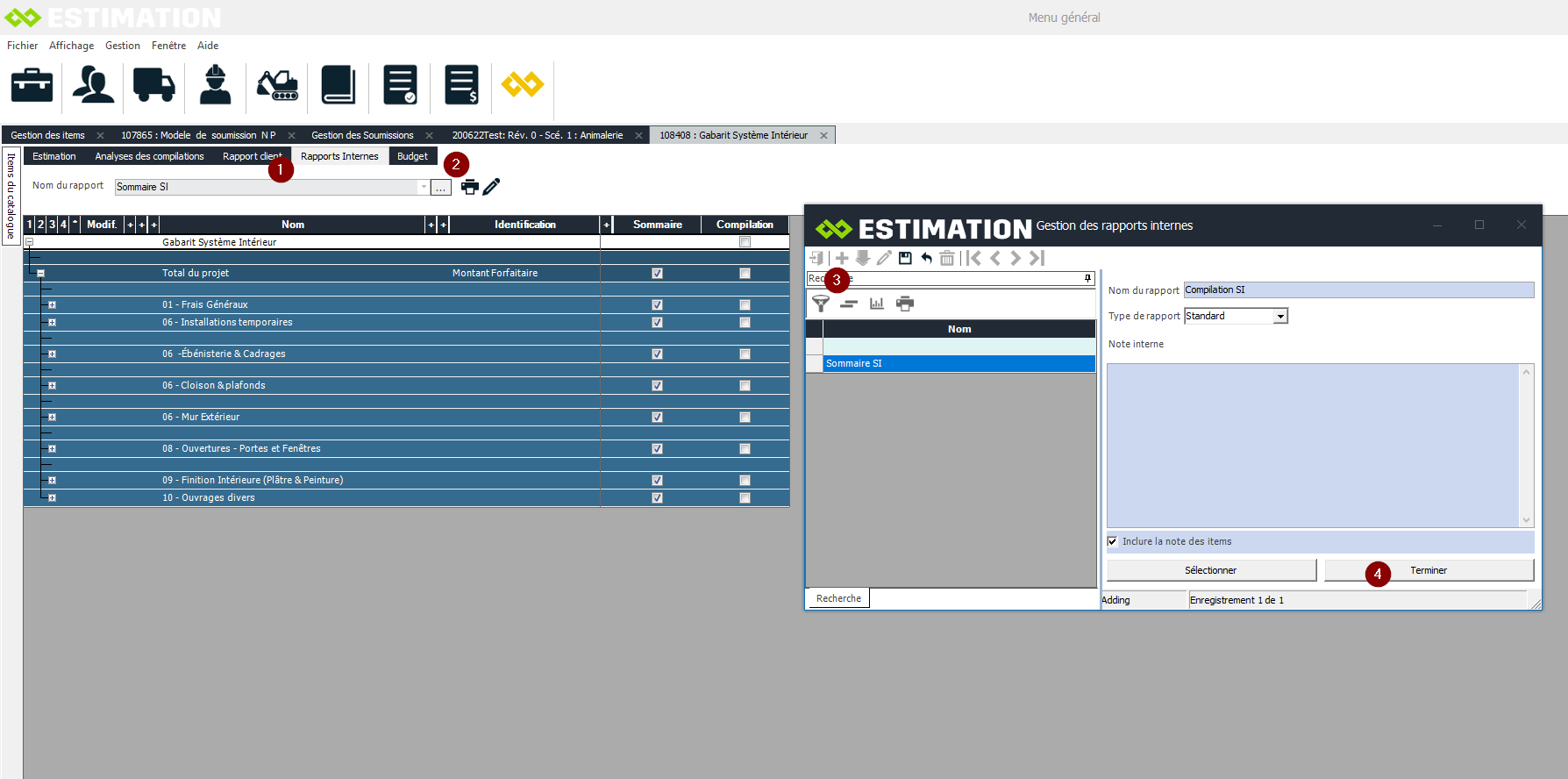 À partir de votre gabarit, cliquez sur l’onglet : rapport interne