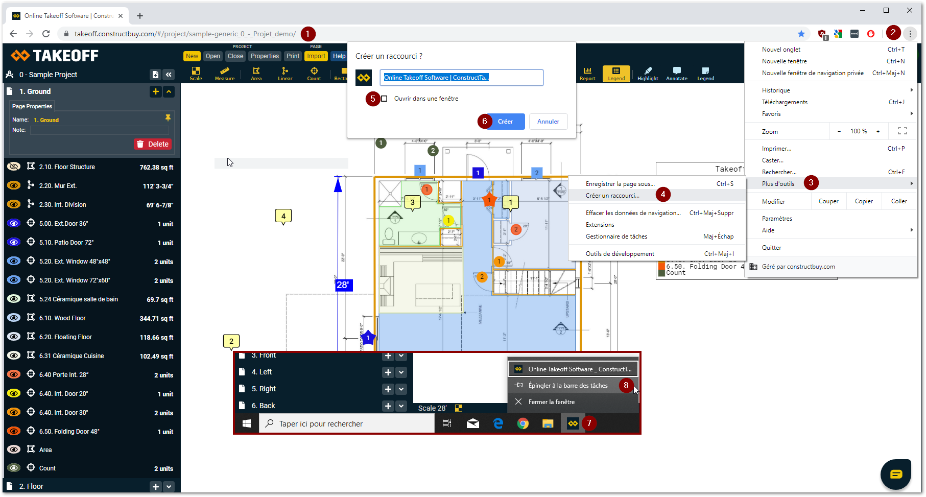 Choisissez »Épingler dans la barre des tâches», vous avez maintenant un lien direct vers Takeoff de ConstructBuy