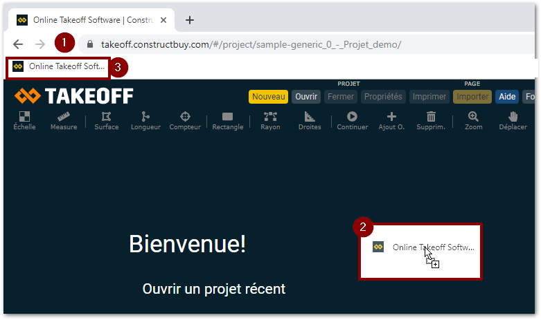 Ouvrez votre navigateur Web et rendez vous sur le site de TAKEOFF https://takeoff.constructbuy.com/#/