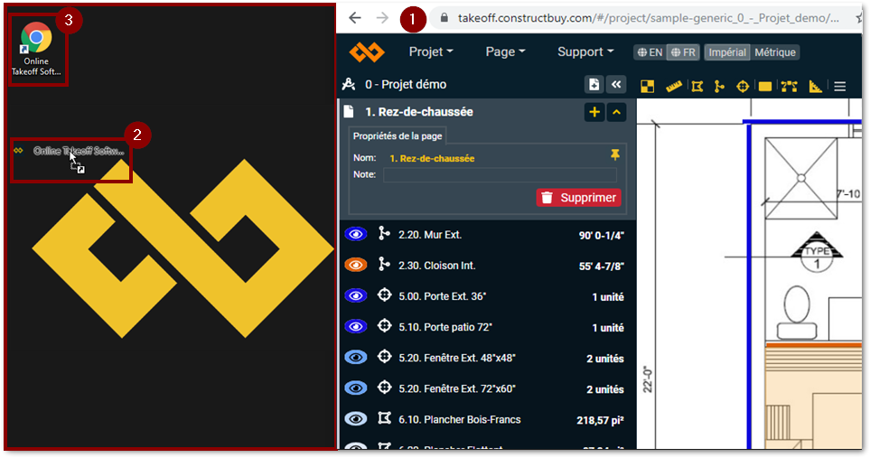 Vous avez maintenant un lien direct vers Takeoff par ConstructBuy sur le bureau de votre ordinateur.