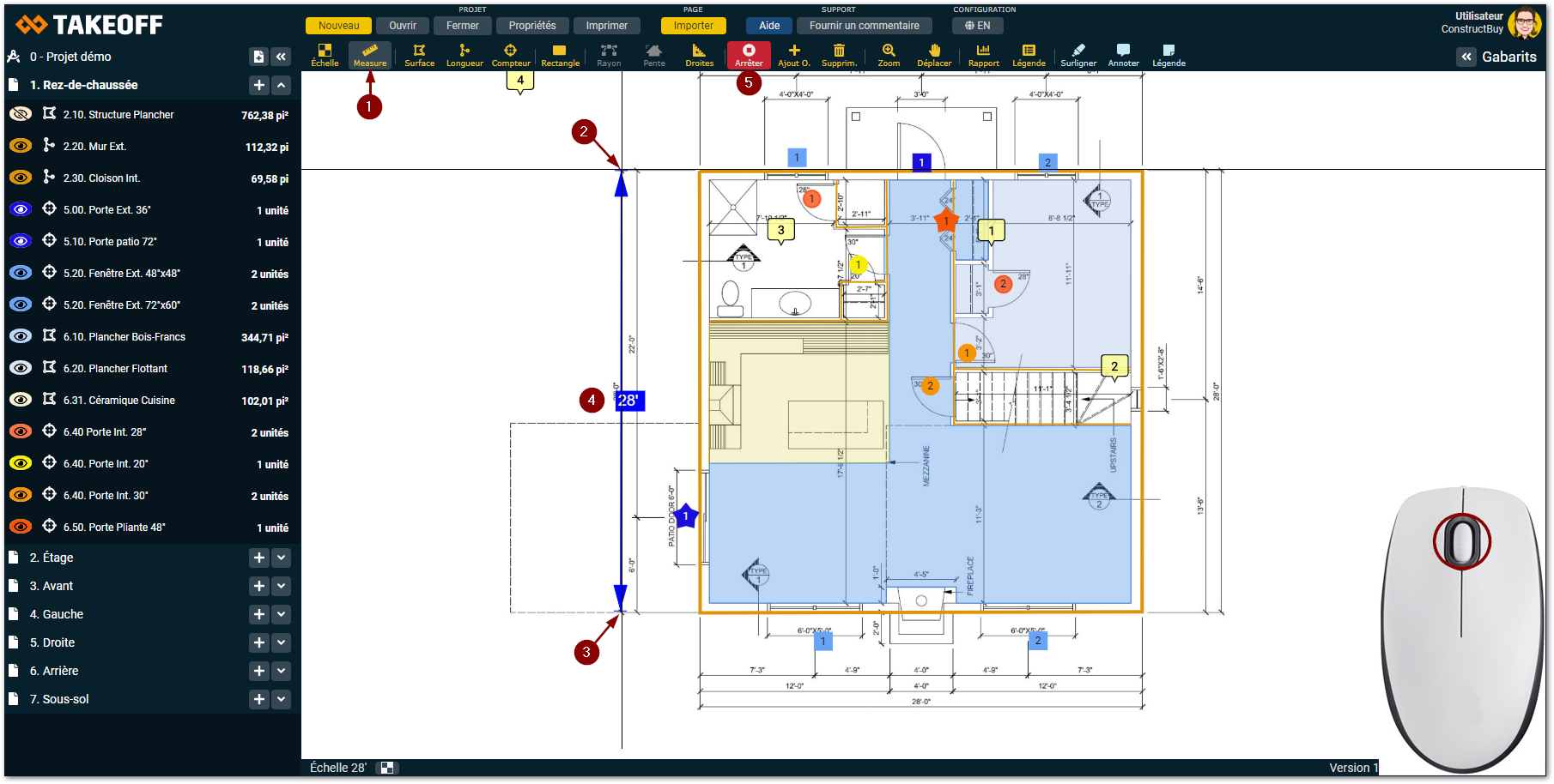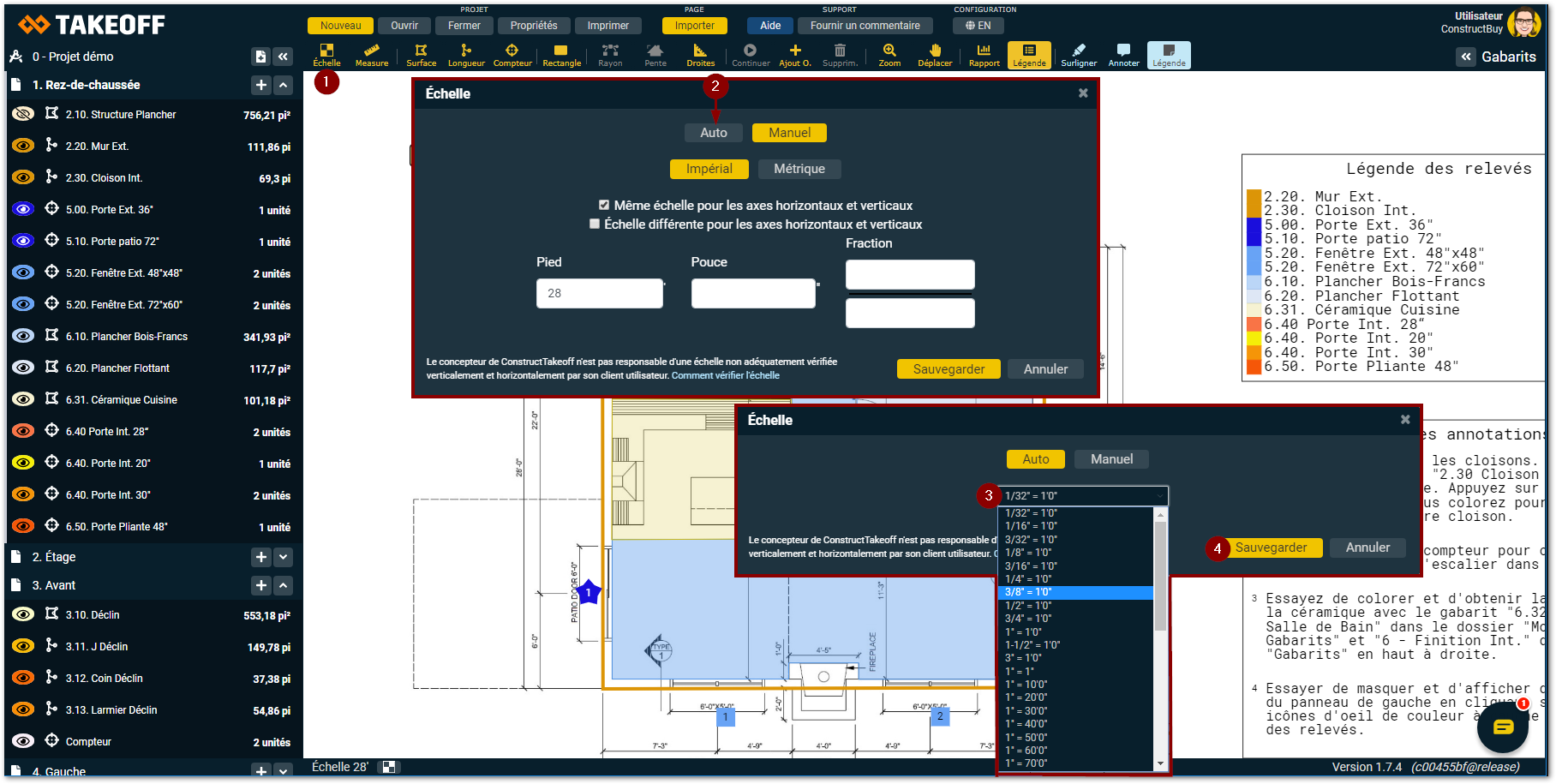 Avant de commencer vos relevés des quantités, vous devez choisir l’échelle du plan.