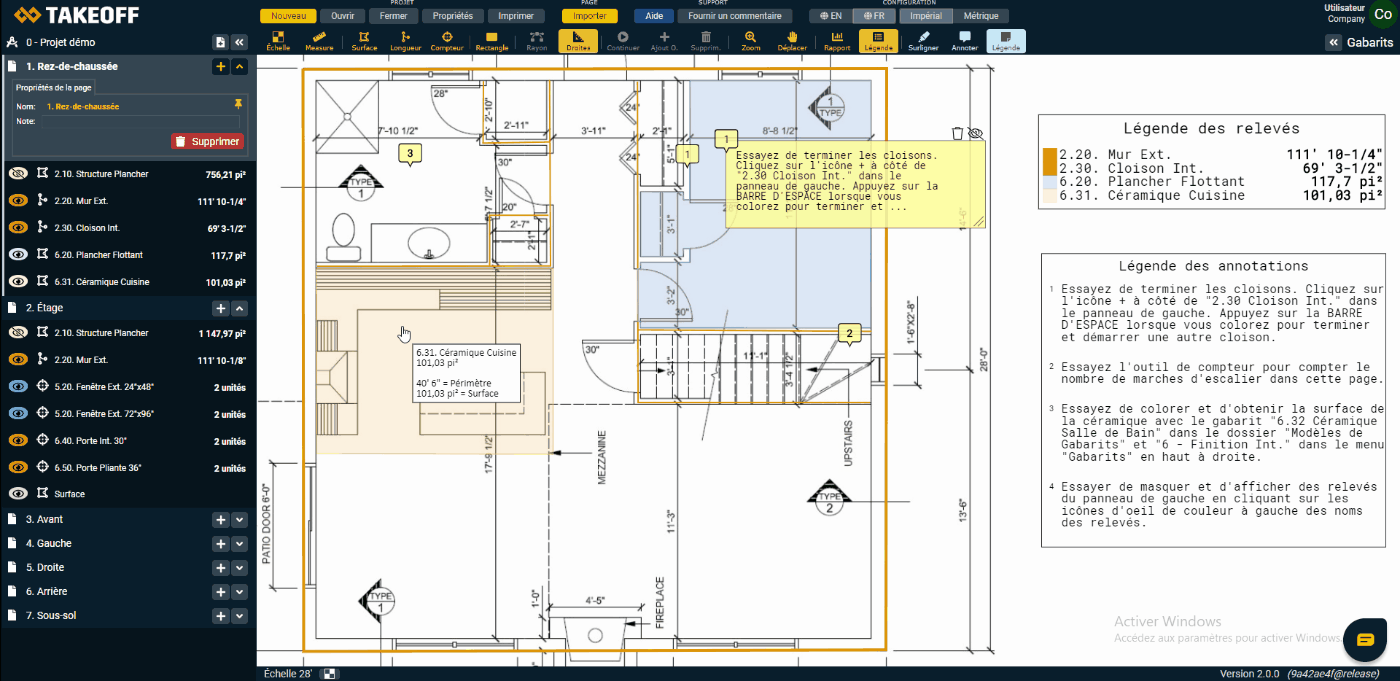 20 seconds is all it takes to calculate the floor surface. (There is also an english version of TAKEOFF).
