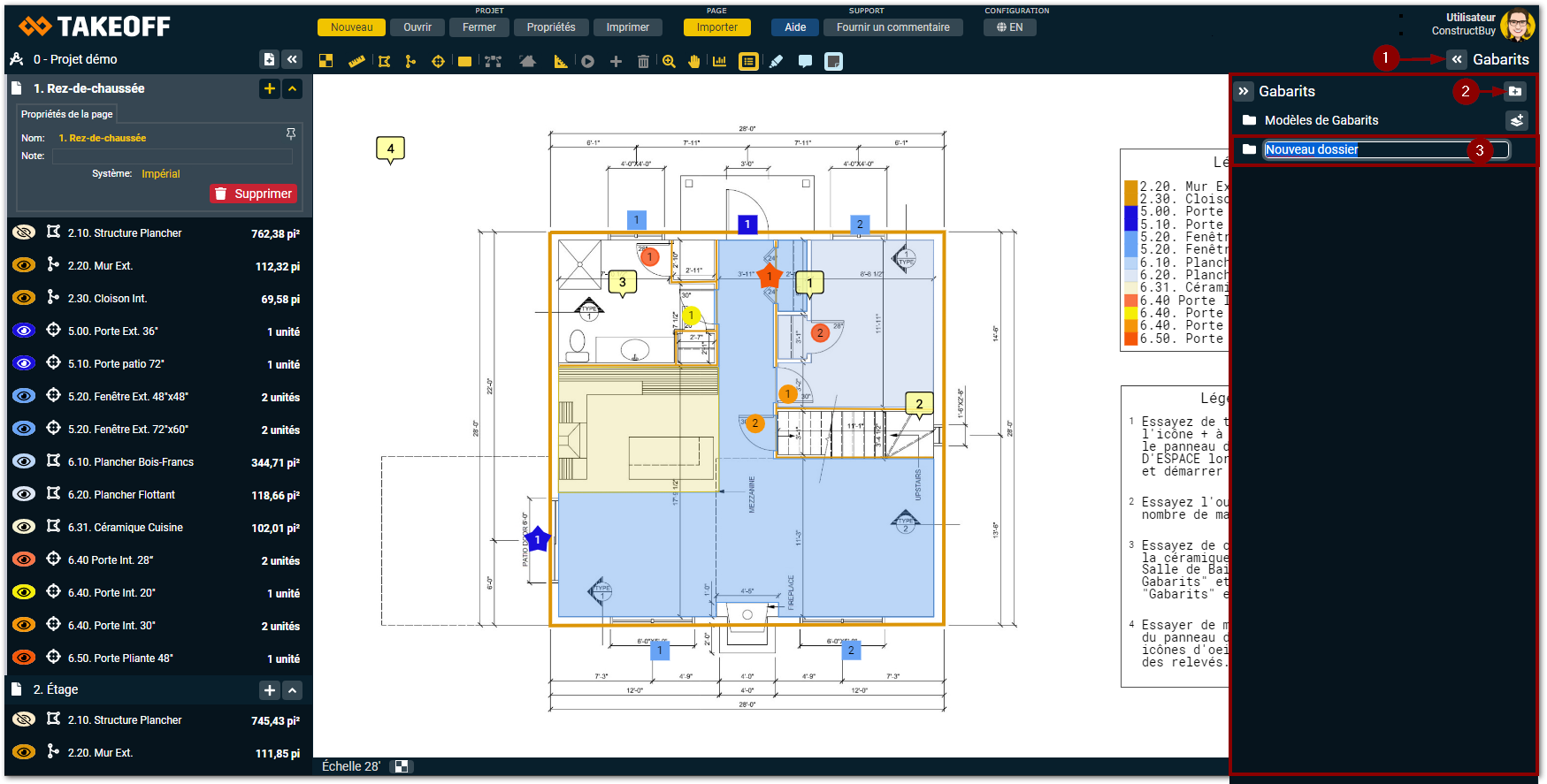 Tous les modèles faits sur Takeoff doivent être classés dans des dossiers, alors, avant de créer un gabarit, vous devez créer au moins un dossier.