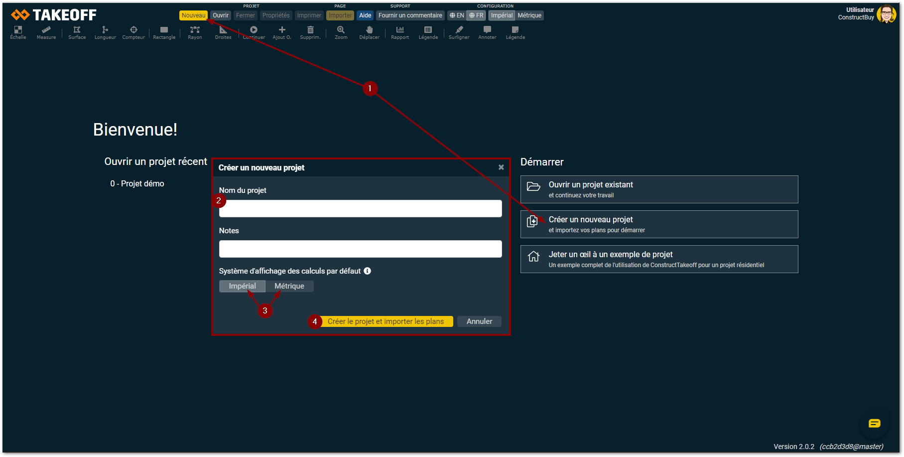 Cliquez sur «Créer le projet et importer les plans»