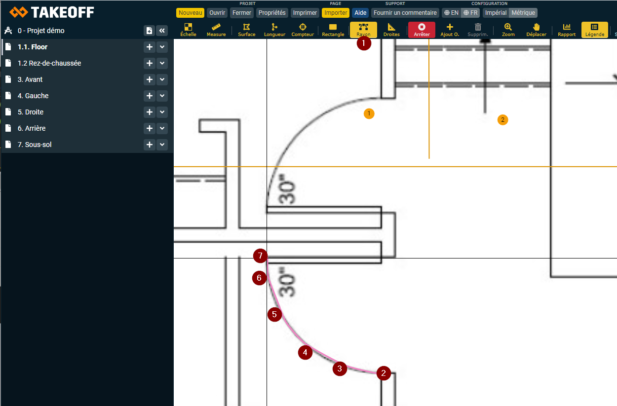 Vous pouvez activer et désactiver l’outil Rayon à n’importe quel stade de votre relevé.