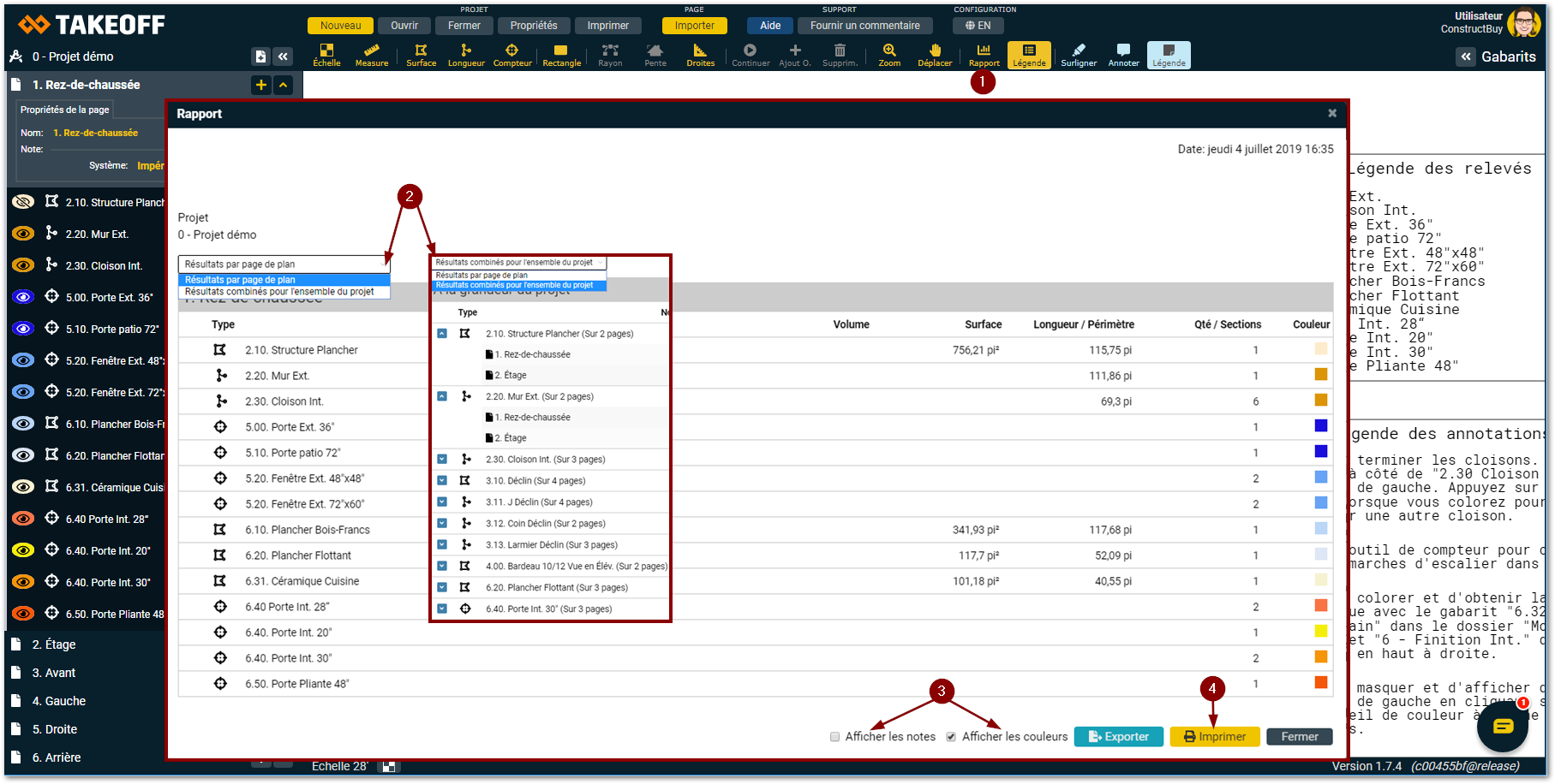 Imprimer vos relevés de quantité