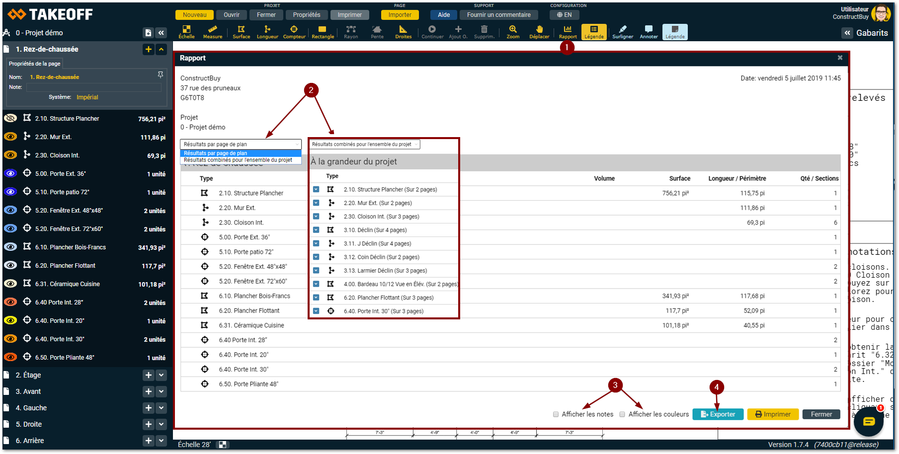 Notre outil de rapport vous permet de choisir si vous souhaitez que les informations soient regroupées par page «Résultats par page de plan» ou pour l'ensemble du projet «Résultats combinés pour l'ensemble du projet»