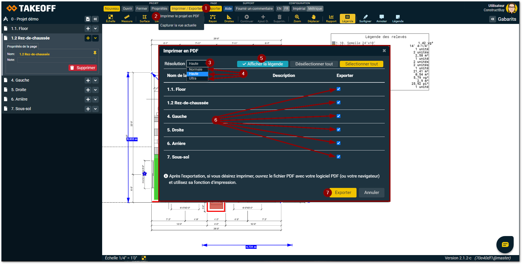 Cliquez sur «Exporter» et un fichier PDF des pages de plan sélectionnées sera créé