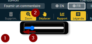 Si vous avez activez l’outil «Zoom» déplacez le bouton bleu vers la gauche